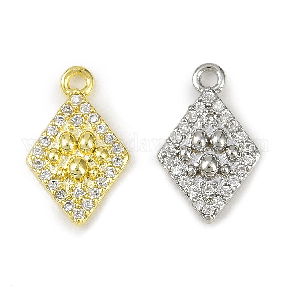 Латунные микропаве прозрачные подвески с фианитом, без кадмия, без никеля и без свинца, долговечный, ромб с отпечатками лап