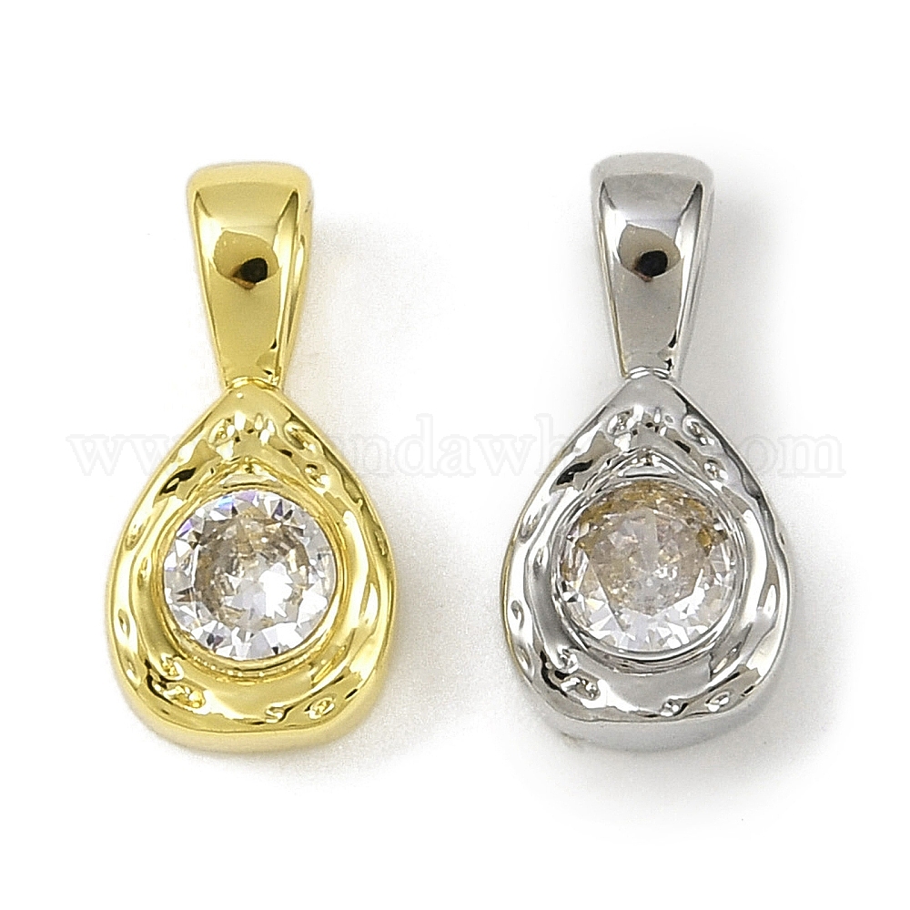 Подвески из латуни с прозрачным фианитом, без кадмия, без никеля и без свинца, слезинки, долговечный