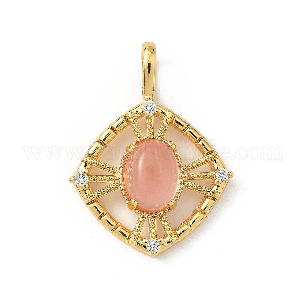 • Настоящее золото 18K Латунные микро проложить кубического циркония подвески, ромб прелести, с синтетическим вишневым кварцевым стеклом, реальный 18 k позолоченный, 24.5x18x5.5 мм, отверстие : 5x3 мм