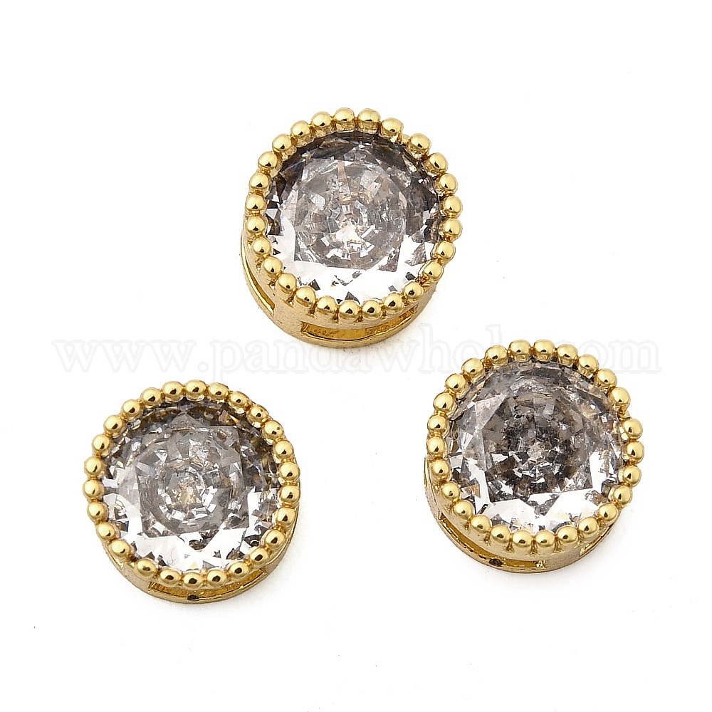 Латунные микро проложить кубического циркония прелести, плоско-круглые, без свинца и без кадмия, долговечный, реальный 18 k позолоченный, стойки покрытие
