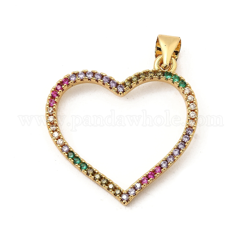 Латунные микро-паве красочные кубические циркониевые подвески, полые прелести сердца, без свинца и без кадмия, долговечный, стойки покрытие