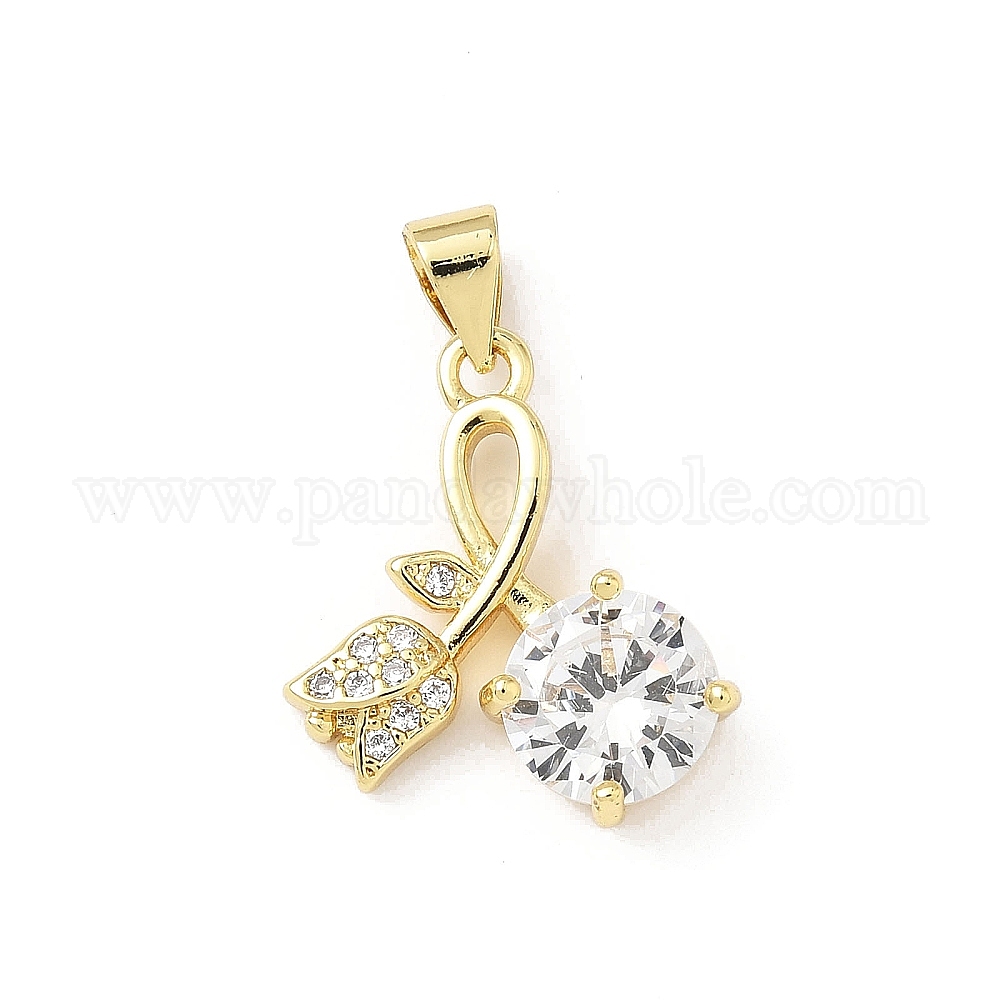 Латунные микропаве прозрачные подвески с фианитом, цветок, без свинца и без кадмия, долговечный, стойки покрытие