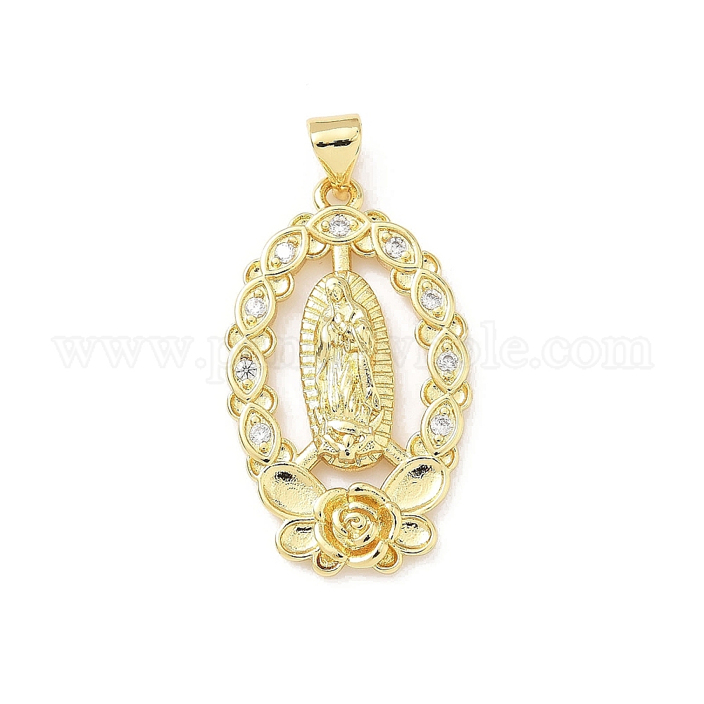 • Настоящее золото 18K Латунные микропаве прозрачные подвески с фианитом, овал и девы марии, без свинца и без кадмия, долговечный, стойки покрытие, реальный 18 k позолоченный, 29x17x3 мм, отверстие : 5x3.5 мм