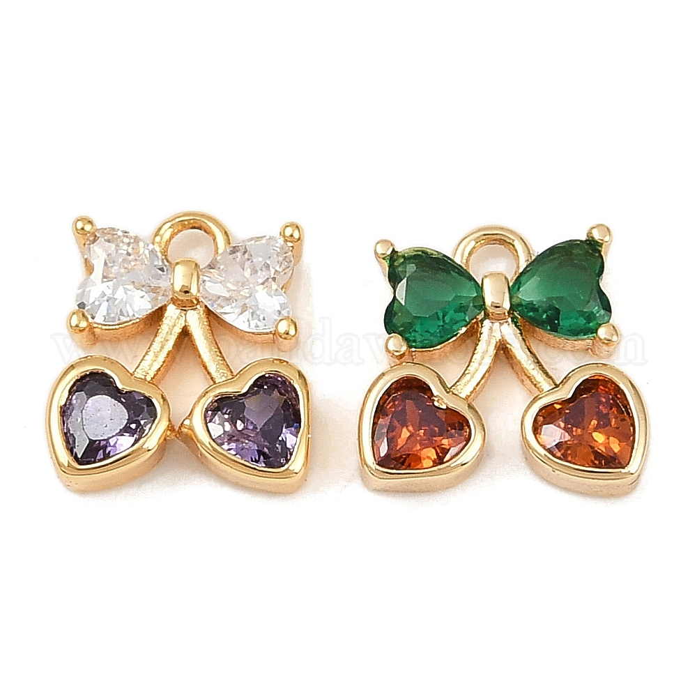 Латунные микро проложить кубического циркония прелести, без кадмия, без никеля и без свинца, черри прелести, реальный 18 k позолоченный