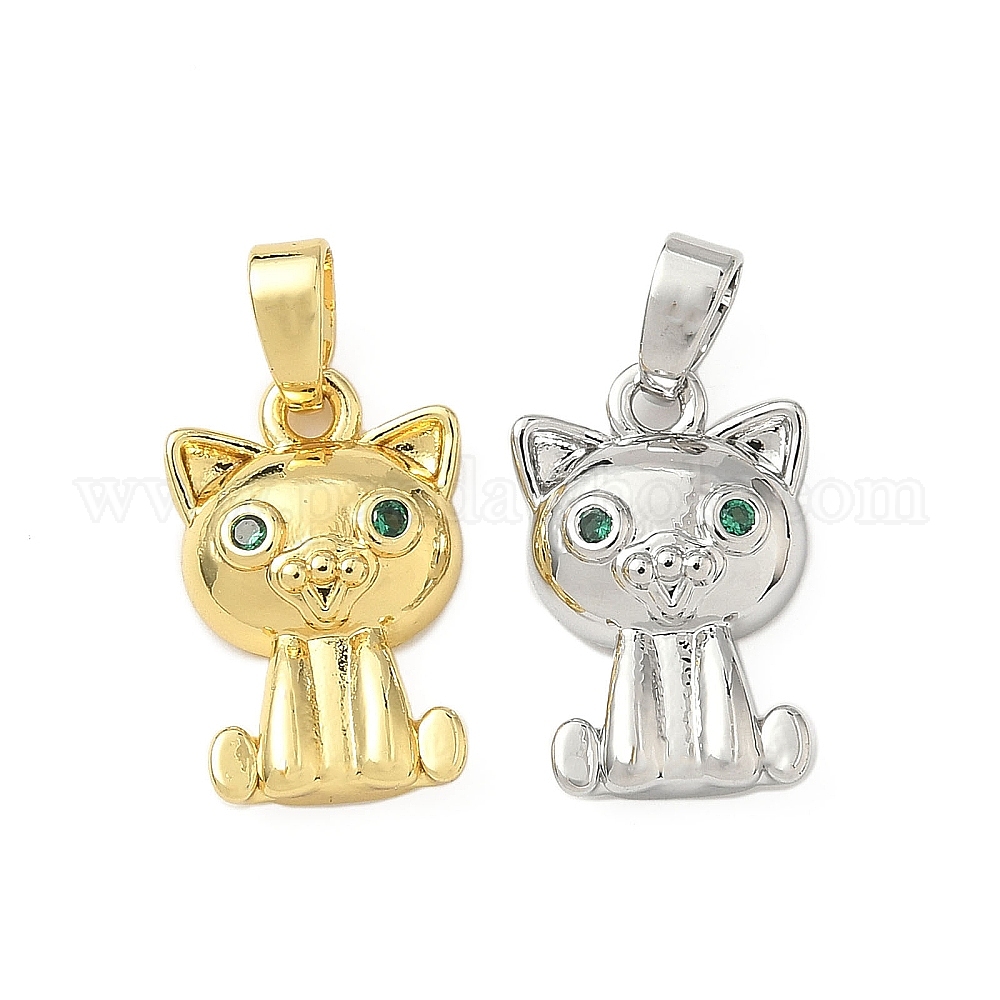 • Настоящее золото 18K Кулон из циркония, без кадмия и без свинца, форма кошки, реальный 18 k позолоченный, 15x10.5x3.7 мм, отверстие : 2.5x4 мм