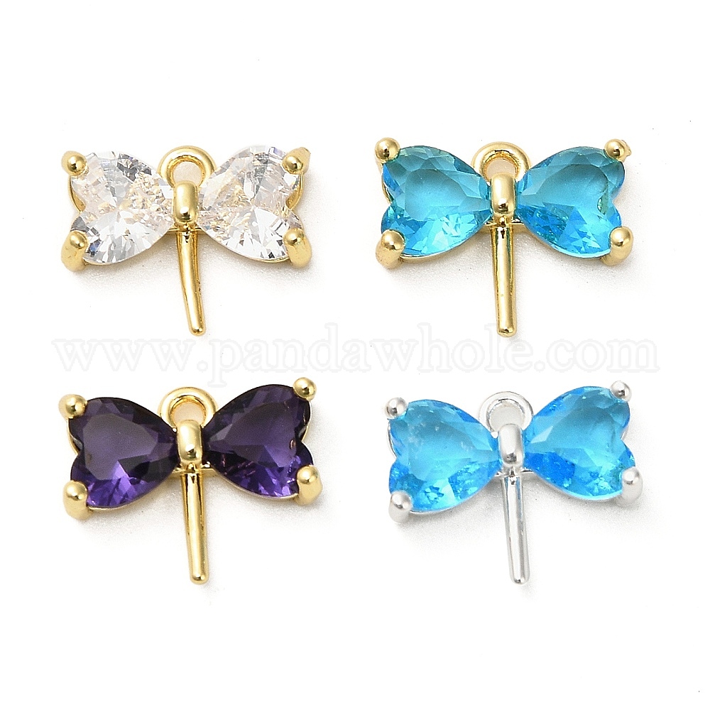 Латунь прокладывает кубические циркониевые прелести, стрекоза, настоящее 18k позолоченное/925 посеребренное