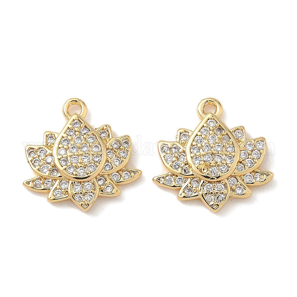 Латунные микро проложить кубического циркония прелести, лотос, без никеля , реальный 18 k позолоченный