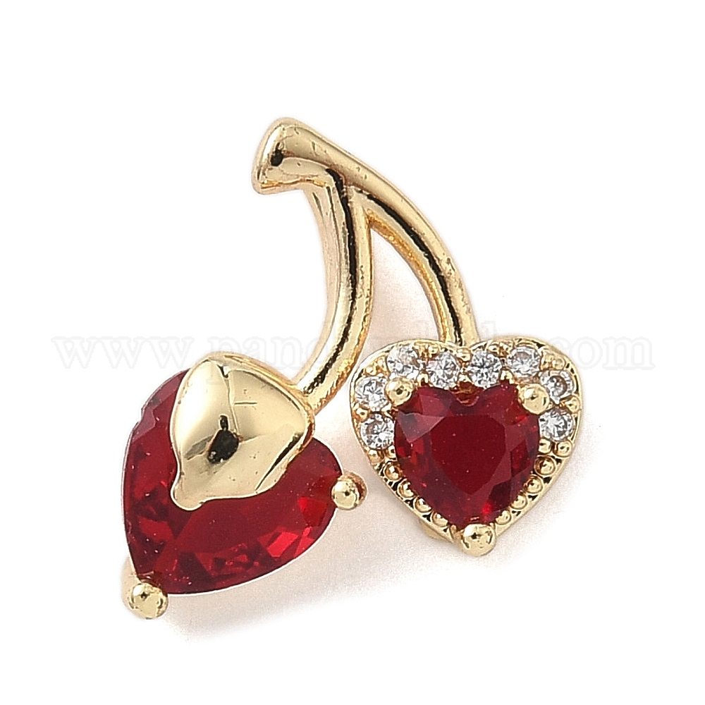 • Золотой Латунные микро проложить кубического циркония подвески, черри прелести, золотые, 13x13.5x4.5 мм, отверстие : 3.5x2 мм