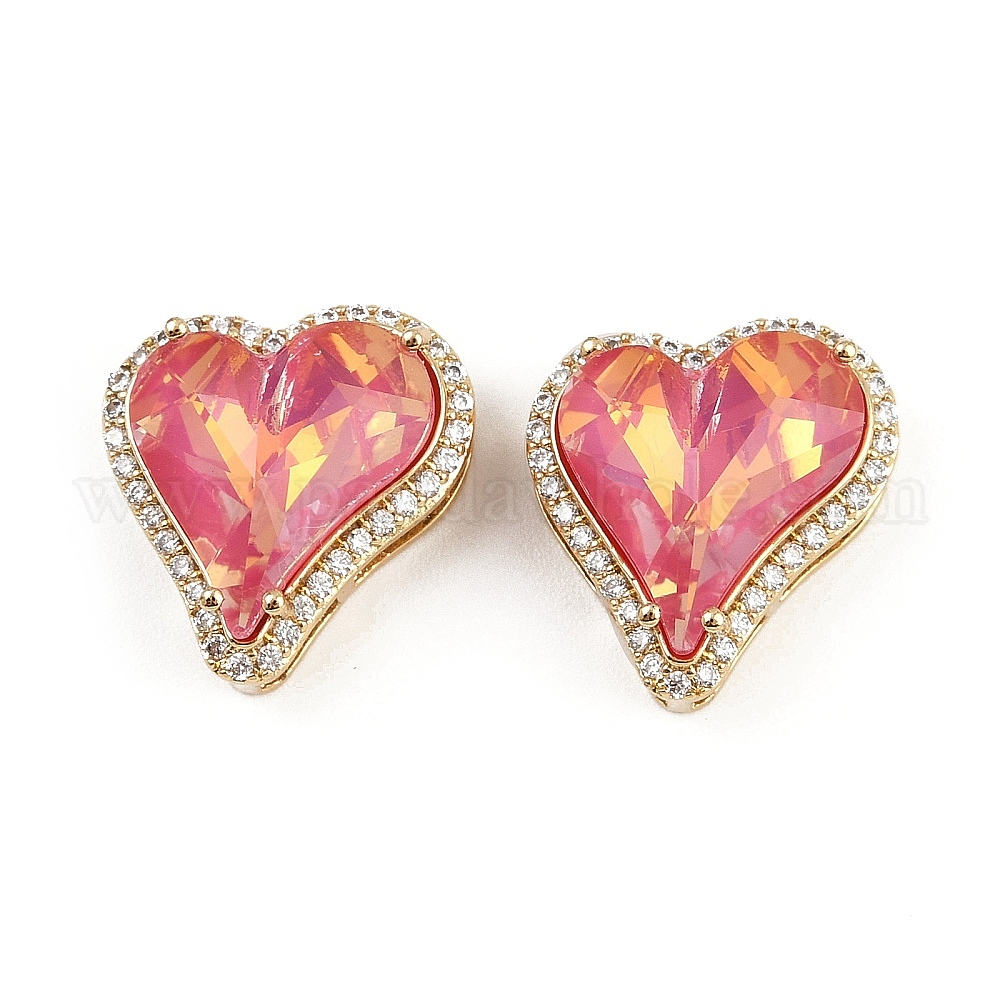 Кулоны из латуни с прозрачным фианитом, сердце прелести, со стеклом, стойки покрытие, реальный 18 k позолоченный, без свинца и без кадмия, долговечный