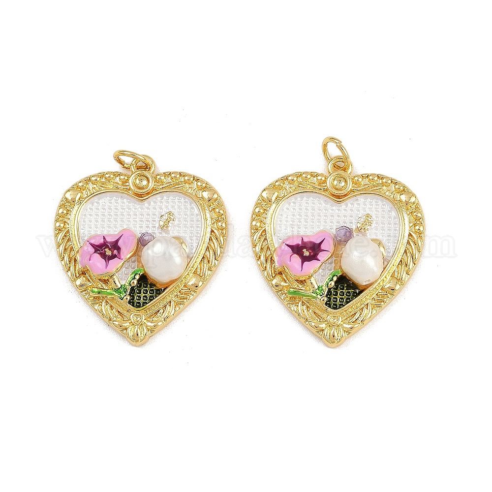 • Разноцветный Кулон из циркония, сердце с цветочными подвесками, с эмалью и натуральным жемчугом, стойки покрытие, реальный 18 k позолоченный, без свинца и без кадмия, долговечный, с целью перехода в кольце, красочный, 25x22.5x6 мм, отверстие : 3.4 мм