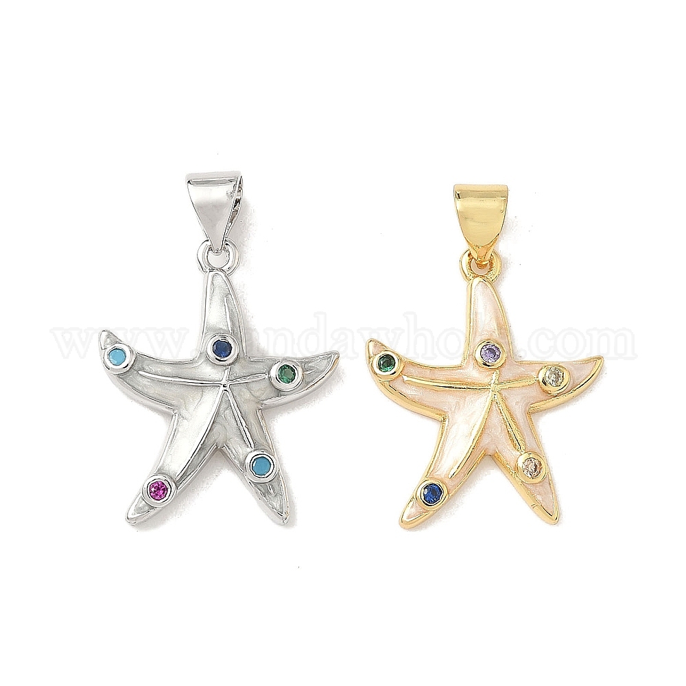 Кулоны с эмалью из латуни с микро паве, красочные кубические циркония, морская звезда, без кадмия и без свинца, долговечный, стойки покрытие
