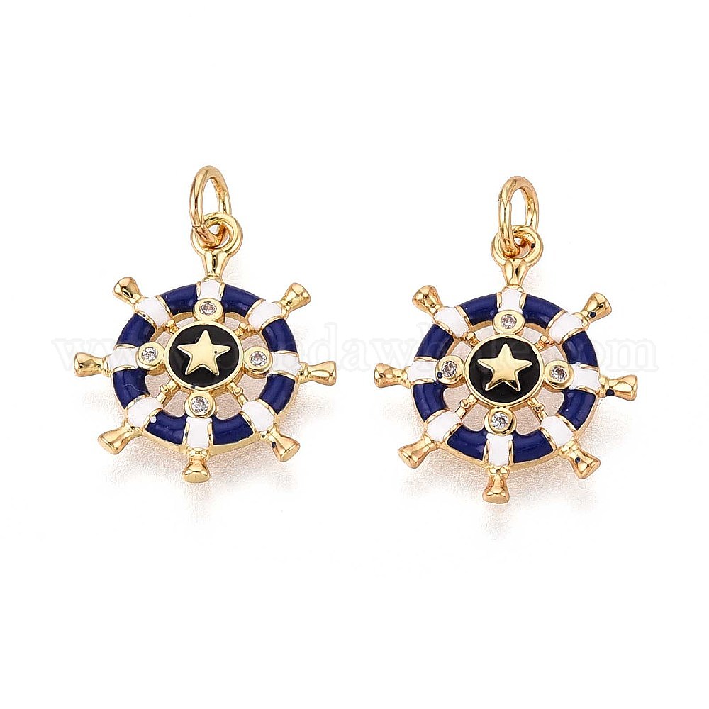 Латунные микро проложить кубического циркония подвески, руль, с эмалью, реальный 18 k позолоченный