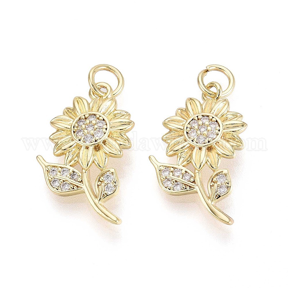 • Настоящее золото 16K Латунные микро проложить кубического циркония подвески, цветок, с целью перехода в кольце, реальный 16 k позолоченный, 20.5x13x4 мм, отверстие : 3 мм