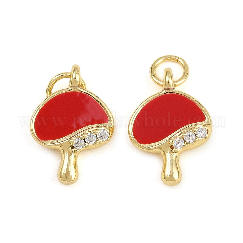 Латунные микро проложить кубического циркония прелести, гриб, с эмалью и кольцом для прыжков, долговечный, без кадмия и без свинца, стойки покрытие