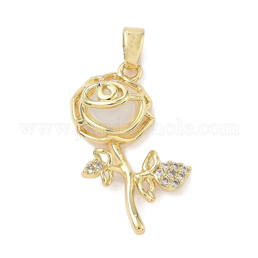 Латунные микро проложить кубического циркония подвески, прелести цветка розы, со стеклом, долговечный, без кадмия и без свинца
