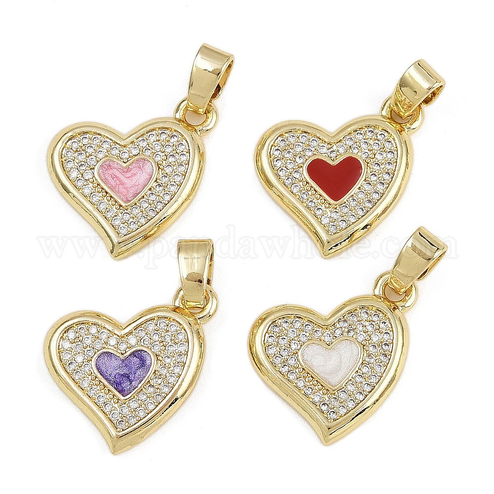 Латунные микропроволочные кубические циркониевые подвески из эмали, сердце прелести, долговечный, стойки покрытие, без свинца и без кадмия