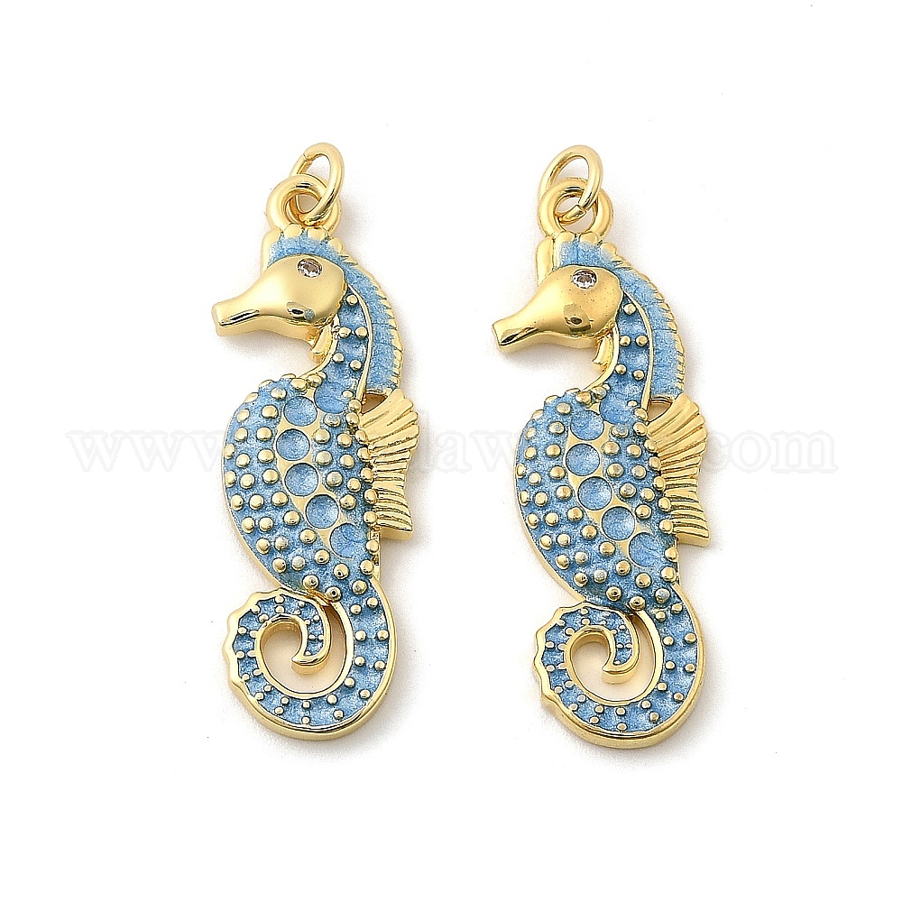 Кулоны с эмалью из латуни с прозрачным кубическим цирконием, морской конек, с целью перехода в кольце