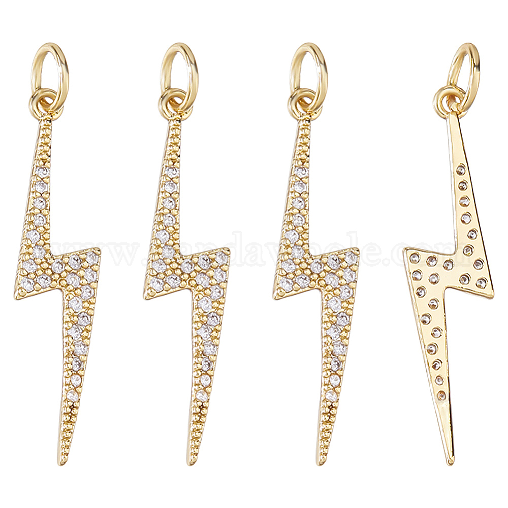 • Золотой 4 кулоны из латуни с микрочастицами и кубическим цирконием., молния, с целью перехода в кольце, золотые, 27.5x6x1.5 мм, отверстие : 3 мм