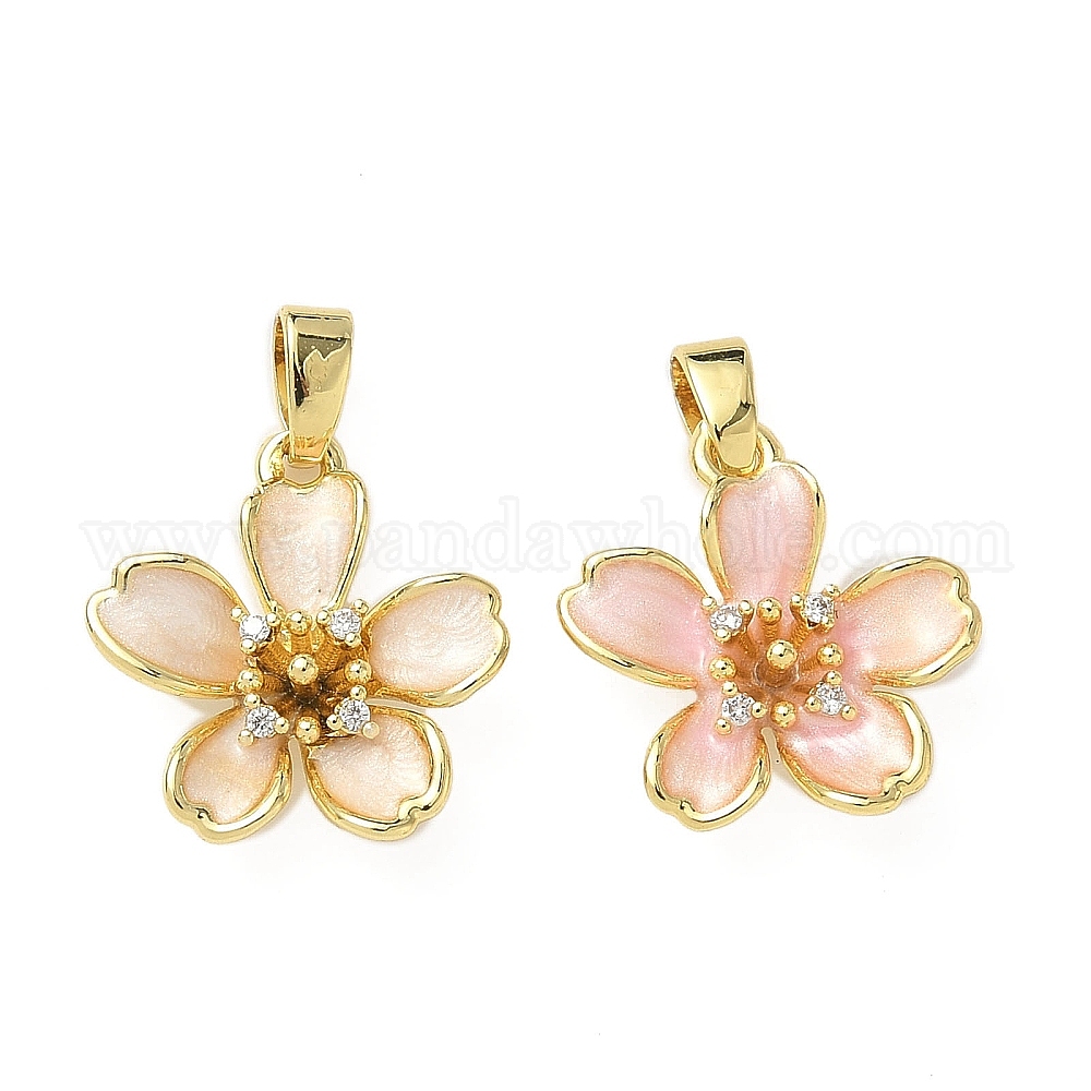 Латунные микро проложить кубического циркония подвески, с эмалью, цветок, реальный 18 k позолоченный