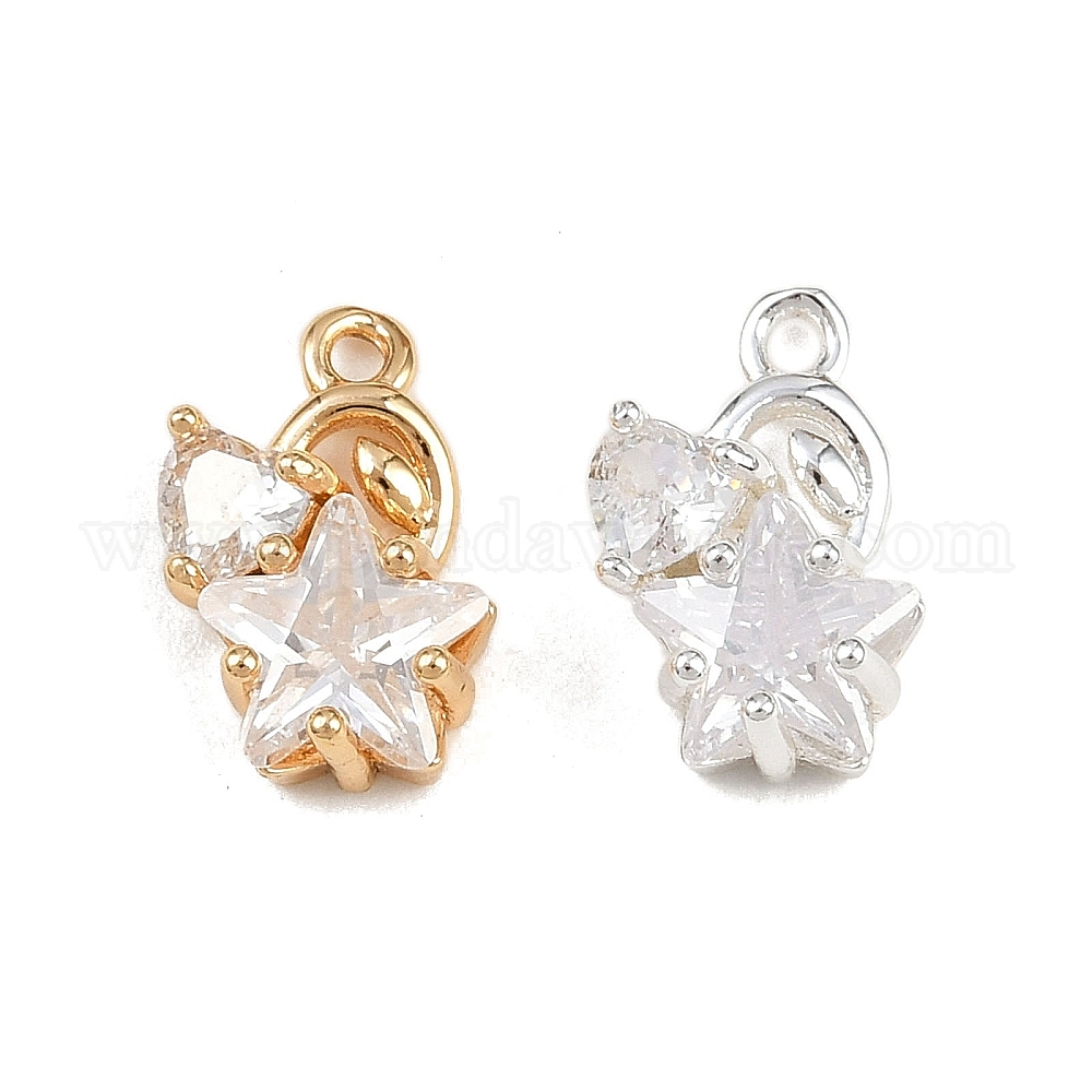 Латунные микро проложить кубического циркония прелести, звезда с сердцем