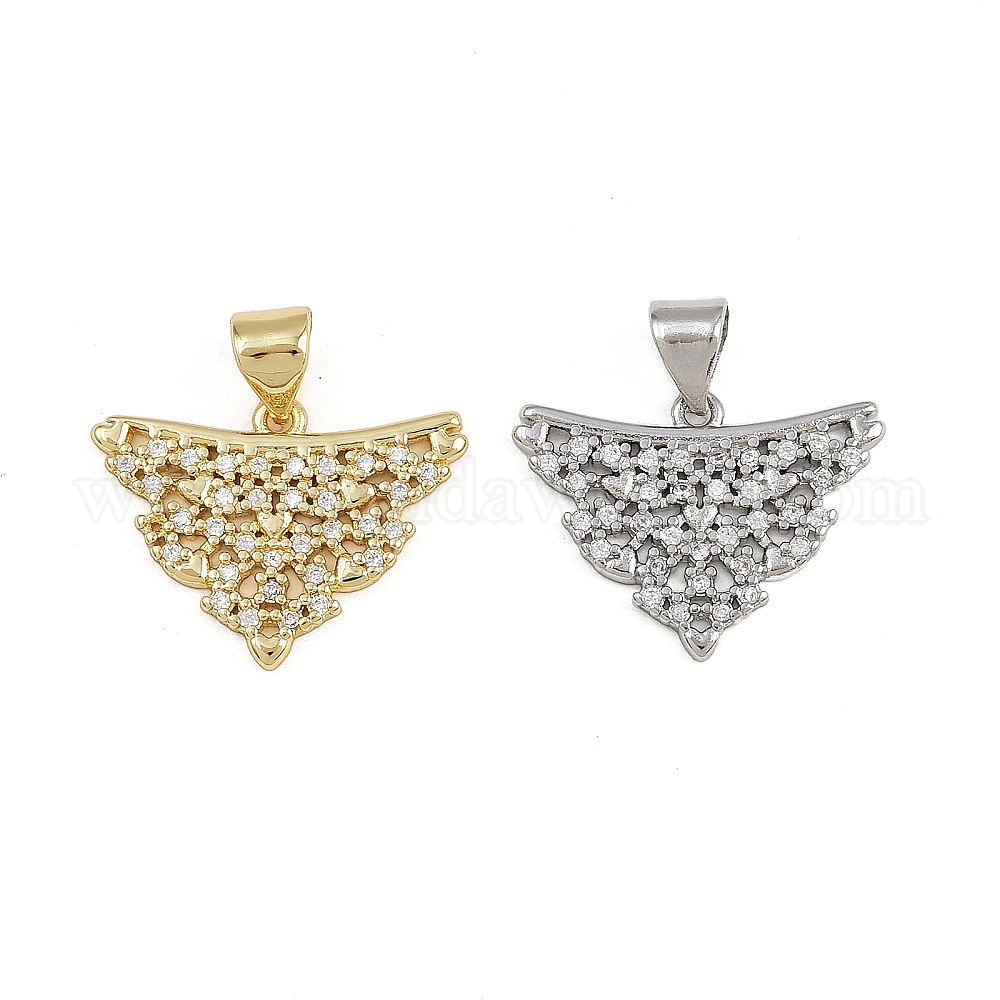 Латунные микропаве прозрачные подвески с фианитом, треугольный шарм, стойки покрытие, долговечный, без свинца и без кадмия (036F6W)