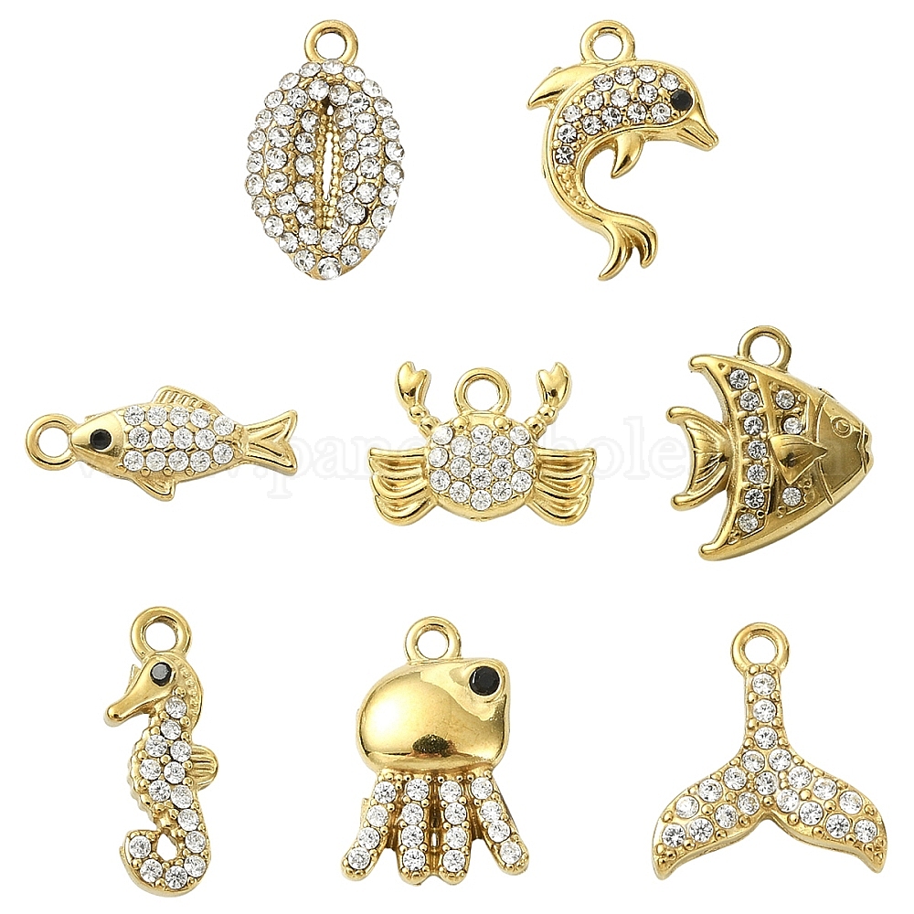 • Золотой 8шт 8 стили 304 подвески из нержавеющей стали, с кубического циркония, ионное покрытие (ip), золотые, 9~14.5x5.5~12x2.5~5 мм, отверстие : 1.2~1.5 мм, 1 шт / стиль