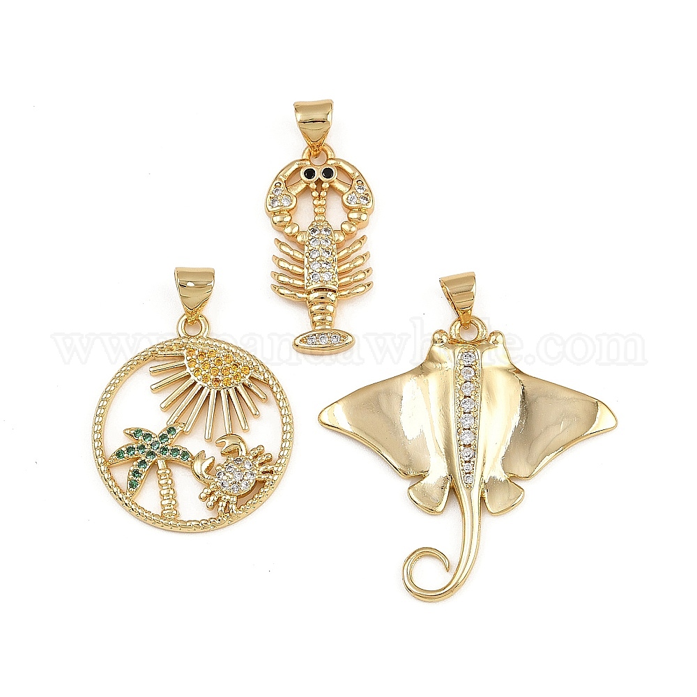 • Краб Латунные микро проложить кубического циркония подвески, золотые, краб, 23.5x21x2.5 мм, отверстие : 4x3.5 мм
