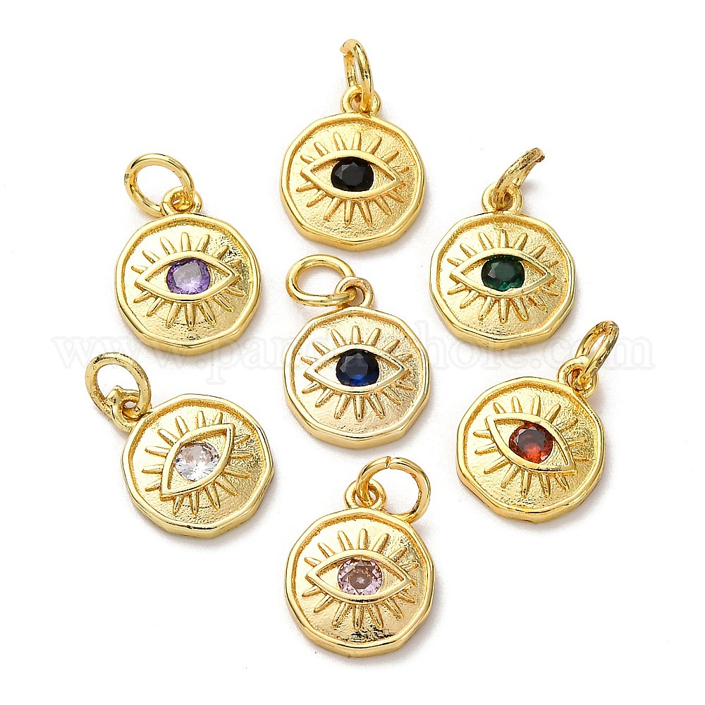 Латунные микро проложить кубического циркония подвески, плоский круглый с оберегами от сглаза, долговечный, с целью перехода в кольце