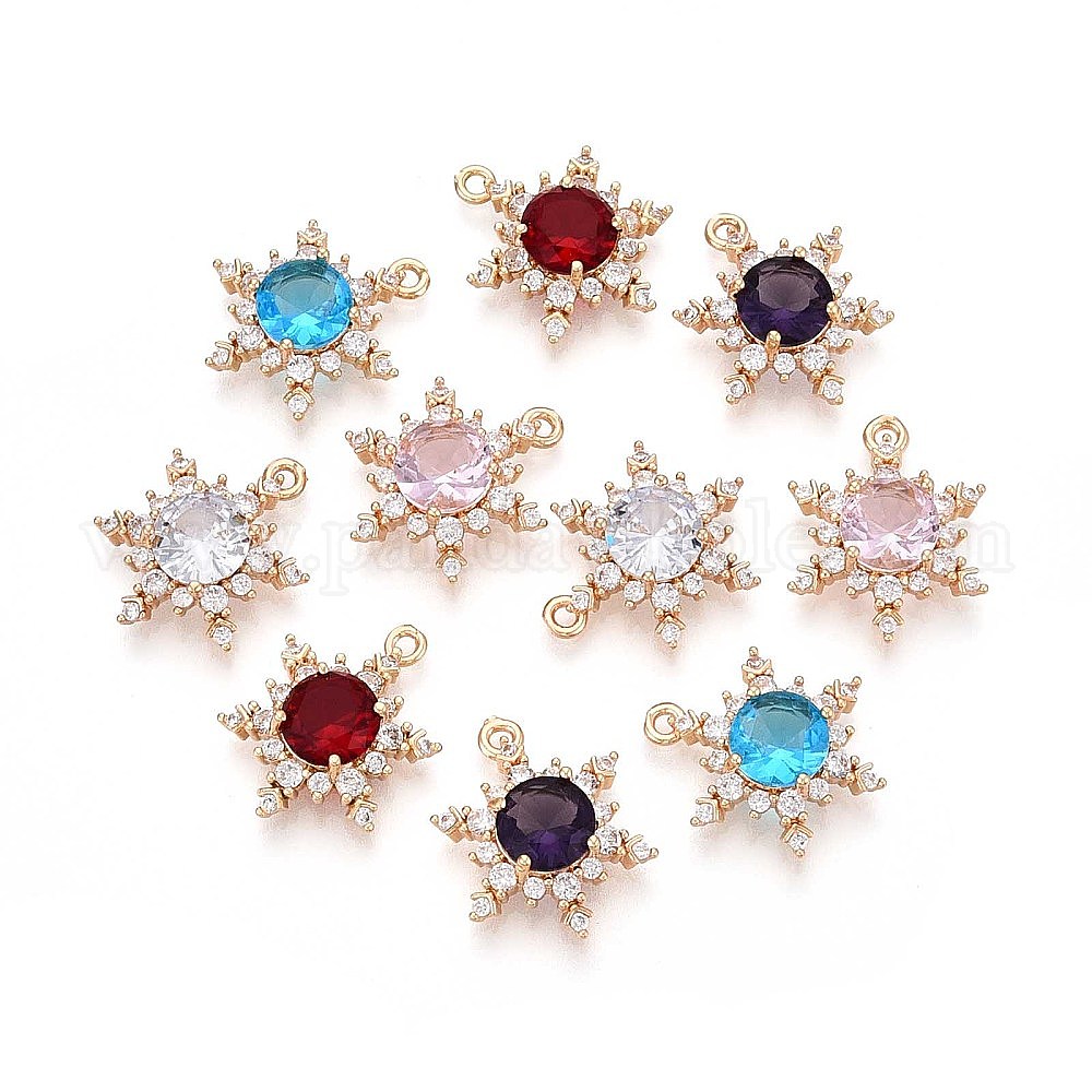 • (52) Непрозрачная лаванда Латунные микро проложить кубического циркония подвески, цветок, долговечный, золотые, разноцветные, 20x16x6 мм, отверстие : 1.2~1.4 мм