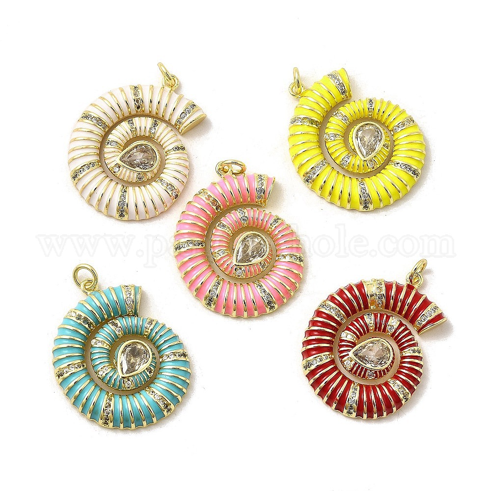 Латунные микро проложить кубического циркония подвески, форма раковины, с эмалью, без свинца и без кадмия, долговечный, стойки покрытие, реальный 18 k позолоченный