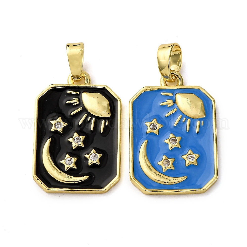 Латунные микро проложить кубического циркония подвески, с эмалью, подвески в виде прямоугольника, солнца, луны и звезд, реальный 18 k позолоченный (036JZ5)