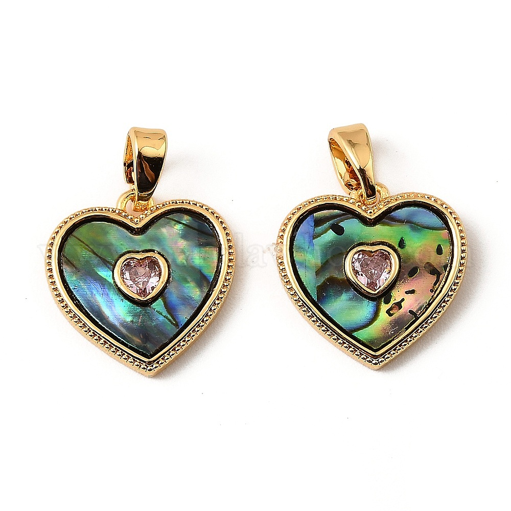 Подвески из латуни, ракушек пауа и розовых кубических цирконий, сердце прелести