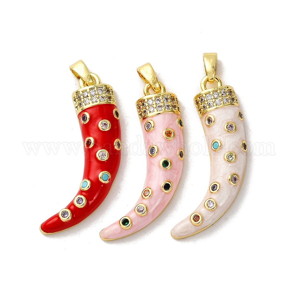 Латунные микро проложить кубического циркония подвески, рог очарование, с эмалью, реальный 18 k позолоченный