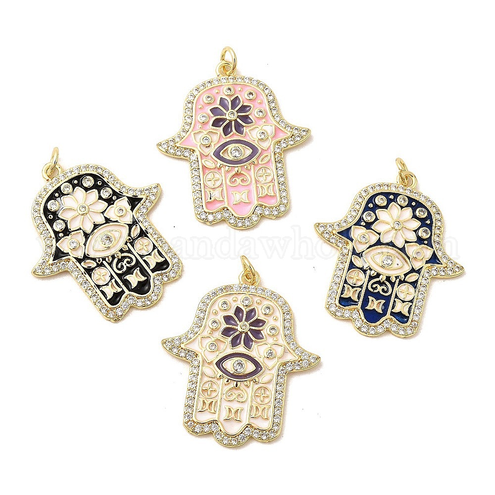 Латунные микро проложить кубического циркония подвески, Религия Хамса обереги для рук, с эмалью, без свинца и без кадмия, долговечный, стойки покрытие, реальный 18 k позолоченный, с целью перехода в кольце