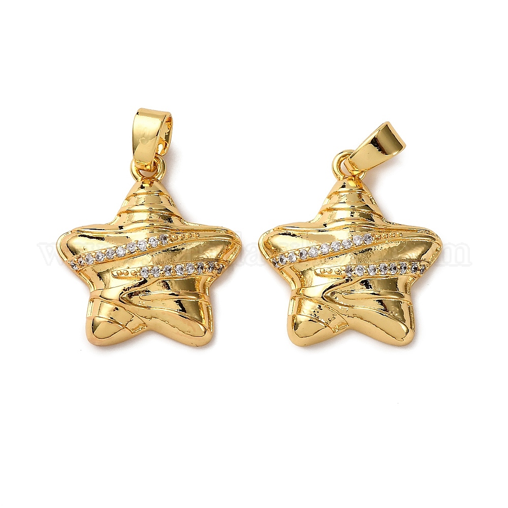 • Прозрачный Латунные микро проложить кубического циркония подвески, звезда, стойки покрытие, долговечный, без свинца и без кадмия, реальный 18 k позолоченный, прозрачные, 21x19x5 мм, отверстие : 5.5x3.5 мм