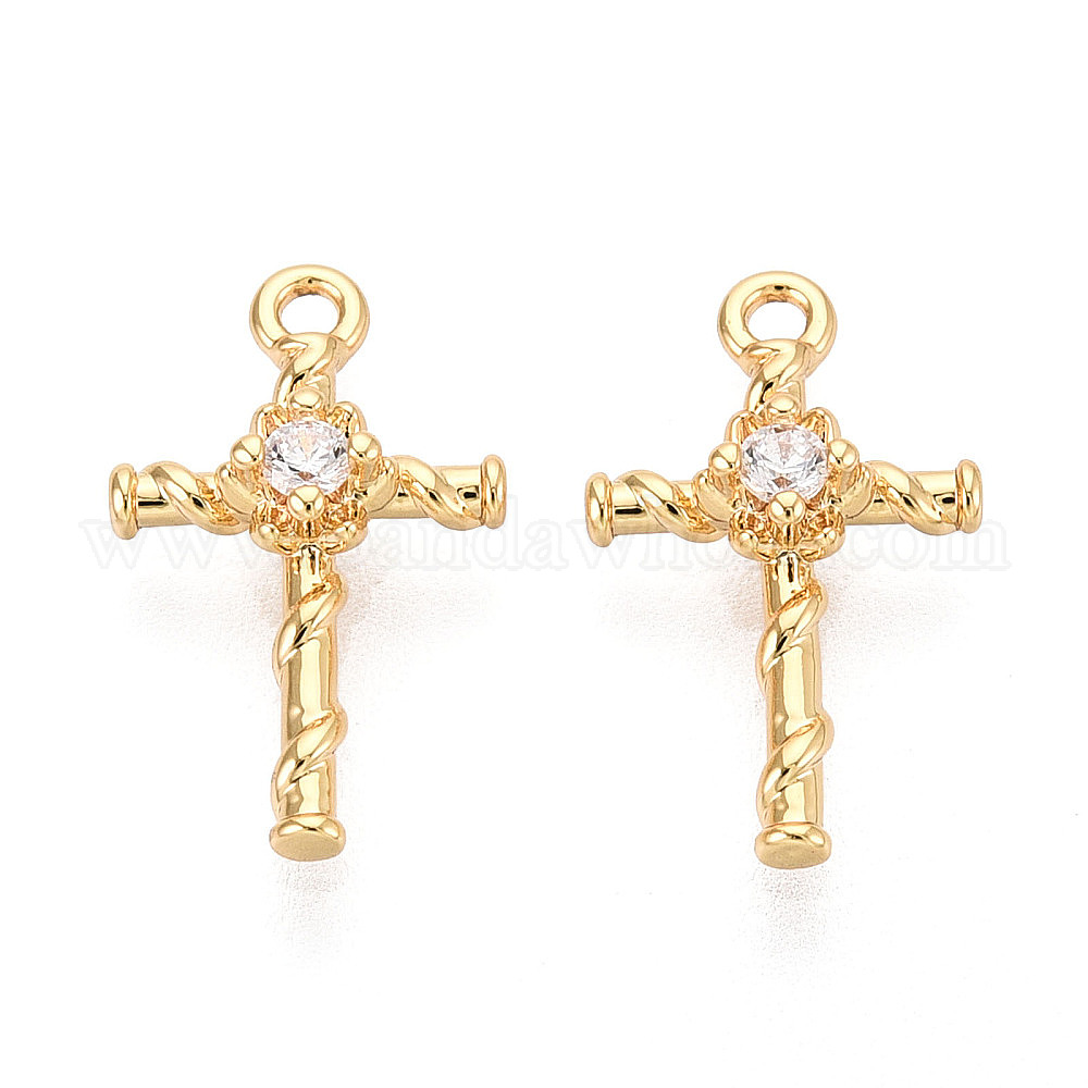 Подвески из латуни с прозрачным фианитом, крестик, без никеля