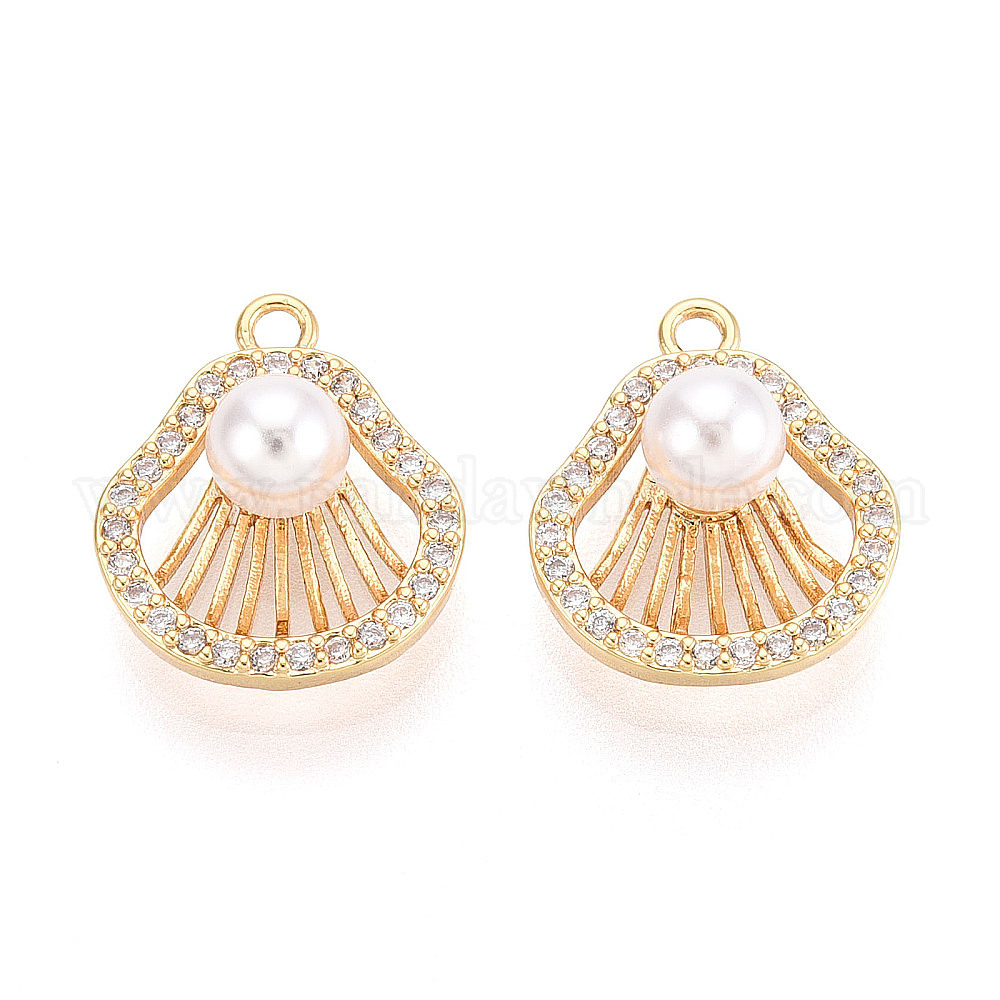 Подвески из латуни с микропаве из прозрачных кубических цирконий и искусственного жемчуга ABS, формы раковины, без никеля