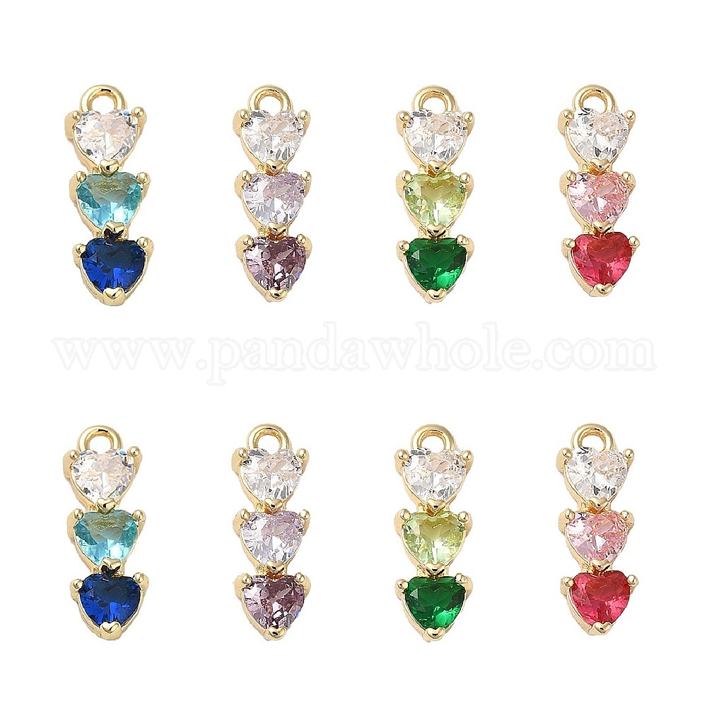 8шт 4 цвета латунные кубические циркониевые подвески, без кадмия, без никеля и без свинца, реальный 14 k позолоченный, 3-сердце