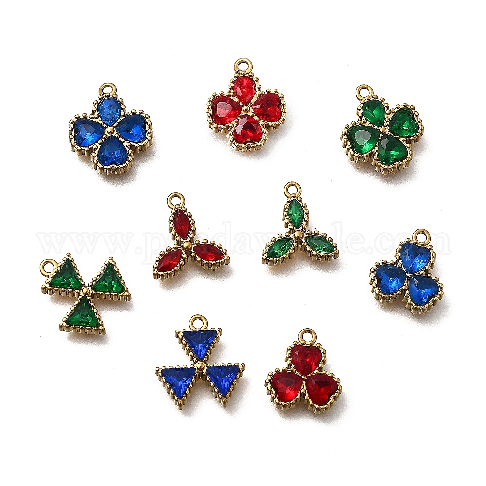 • Красный 304 подвески из нержавеющей стали, с кубического циркония, клевер амулеты, ионное покрытие (ip), золотые, красные, 13.5x11.5x3 мм, отверстие : 1.2 мм