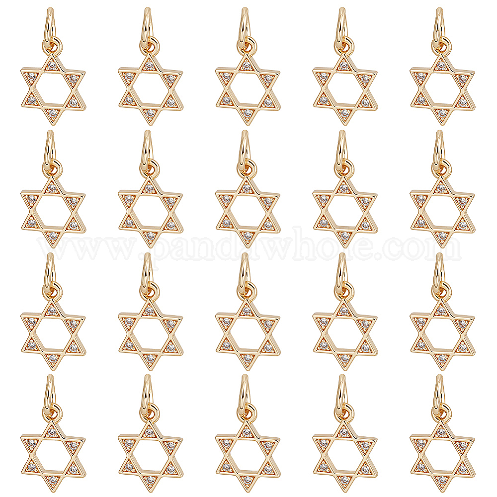 20 шт. Латунные брелоки из прозрачного кубического циркония с микропаве, звезда Давида, с целью перехода в кольце, без кадмия и без свинца (036S3J)