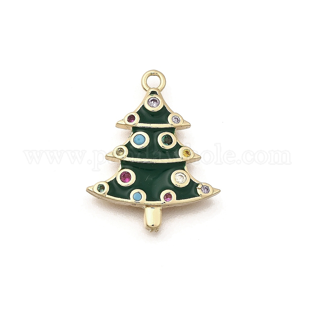 Латунные микро проложить кубического циркония подвески, с эмалью, Рождественские елки
