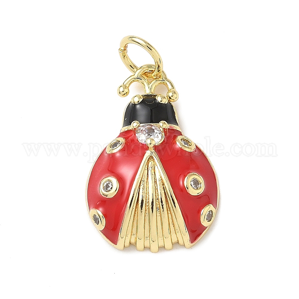 Латунные микро проложить кубического циркония подвески, божья коровка, с эмалью, стойки покрытие, без свинца и без кадмия, долговечный, с целью перехода в кольце