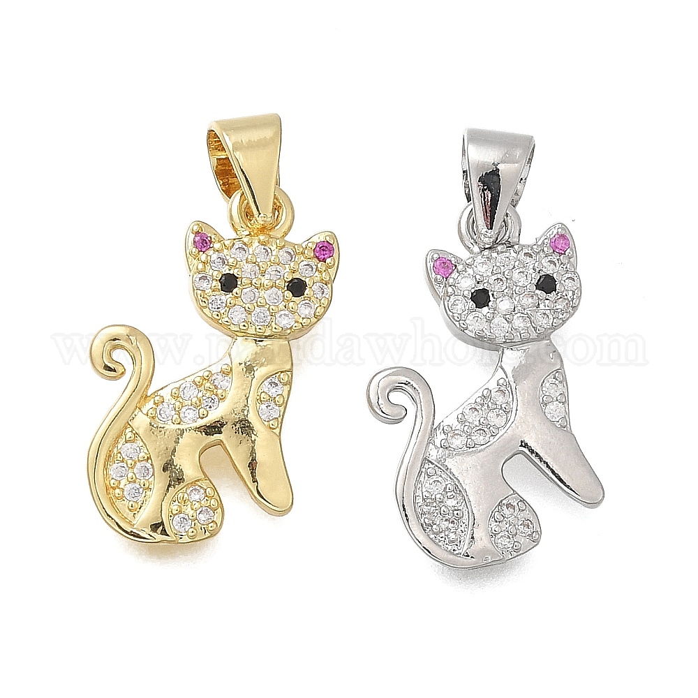 Латунные микро проложить кубического циркония подвески, форма кошки, без кадмия и без свинца, стойки покрытие, долговечный