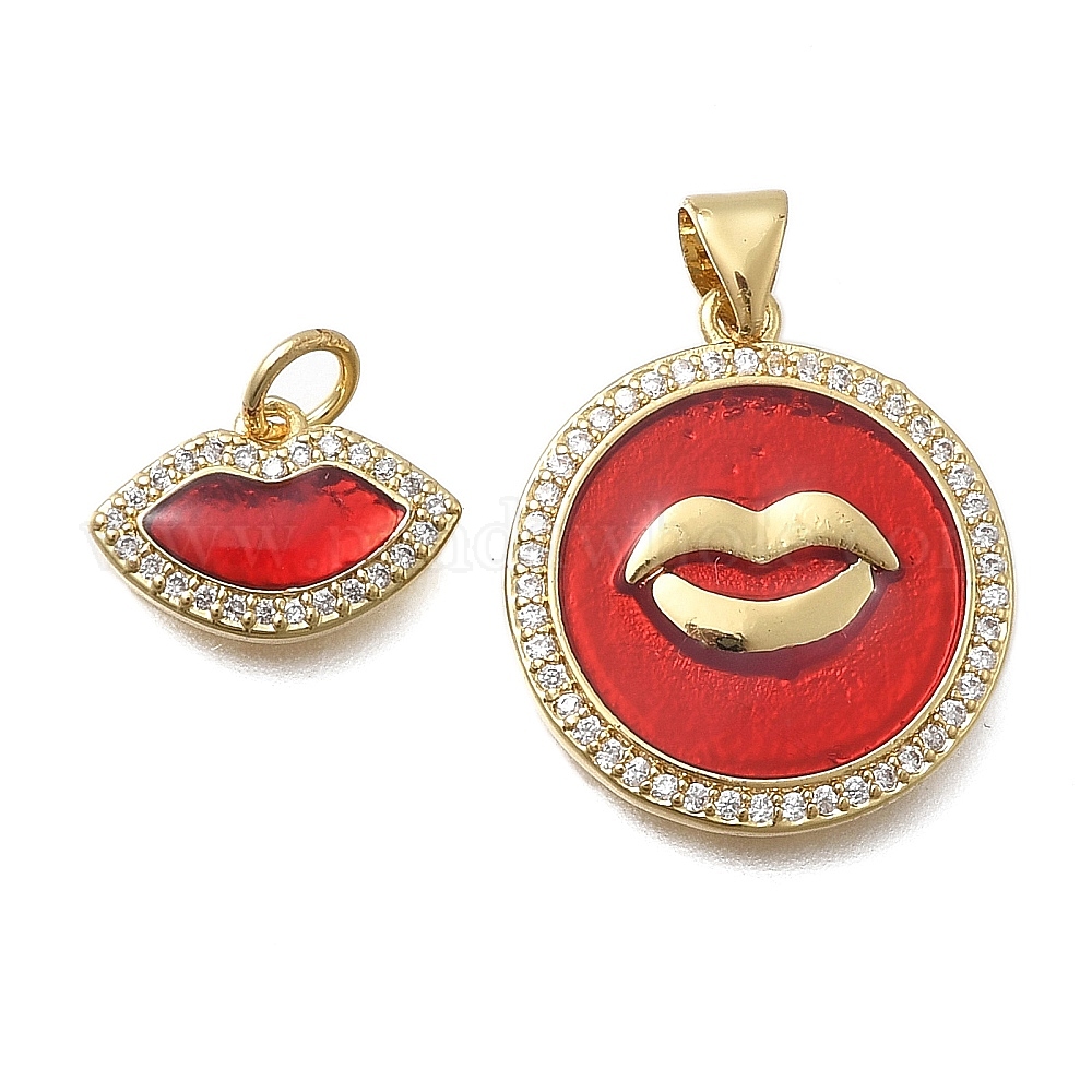Латунные микро проложить кубического циркония подвески, рот, с эмалью, реальный 18 k позолоченный, без кадмия и без свинца, стойки покрытие, долговечный, с целью перехода в кольце