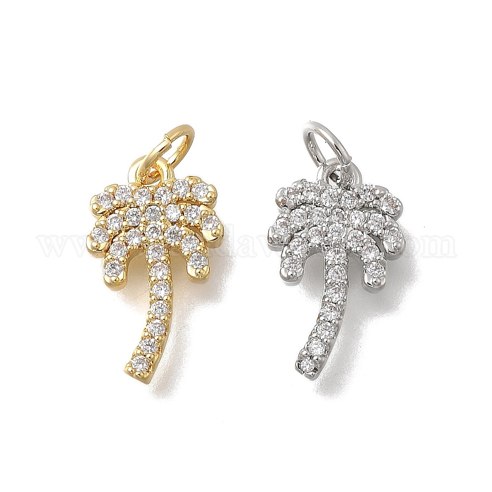 Латунные микропаве прозрачные подвески с фианитом, кокосовая пальма, без кадмия и без свинца, стойки покрытие, долговечный