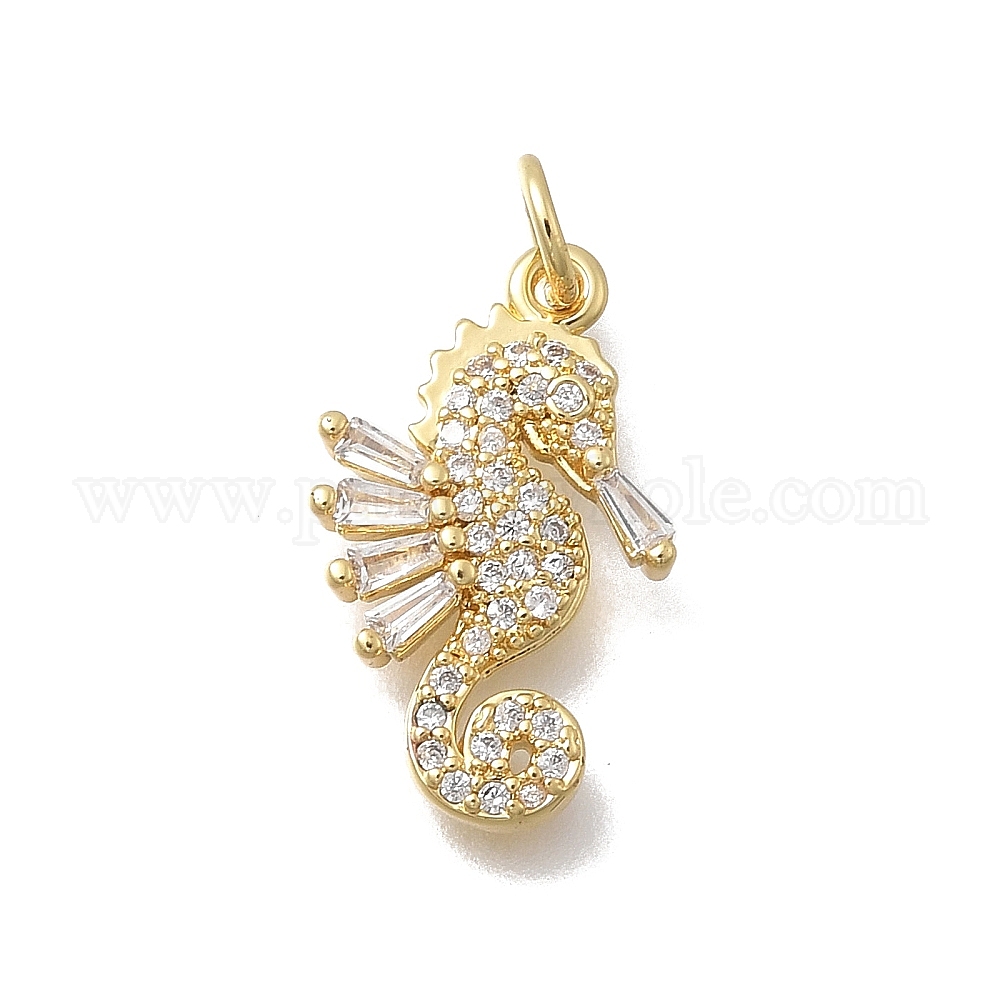 • Настоящее золото 18K Латунные микропаве прозрачные подвески с фианитом, морской конек, без кадмия и без свинца, стойки покрытие, долговечный, реальный 18 k позолоченный, 20.5x12.5x2.5 мм, отверстие : 3.5 мм