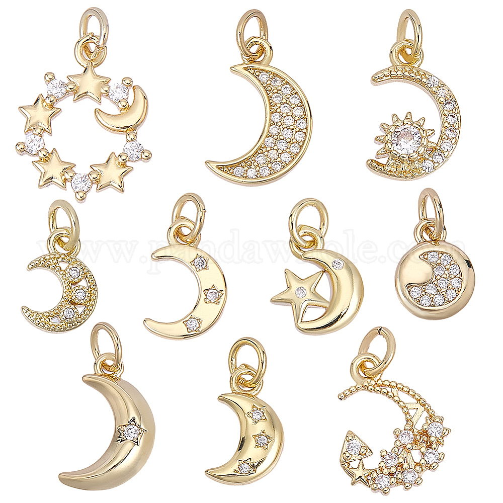 10 шт. 10 стили лунная тематика латунные микропаве прозрачные кубические циркониевые подвески, с целью перехода в кольце, без кадмия, без никеля и без свинца, реальный 18 k позолоченный