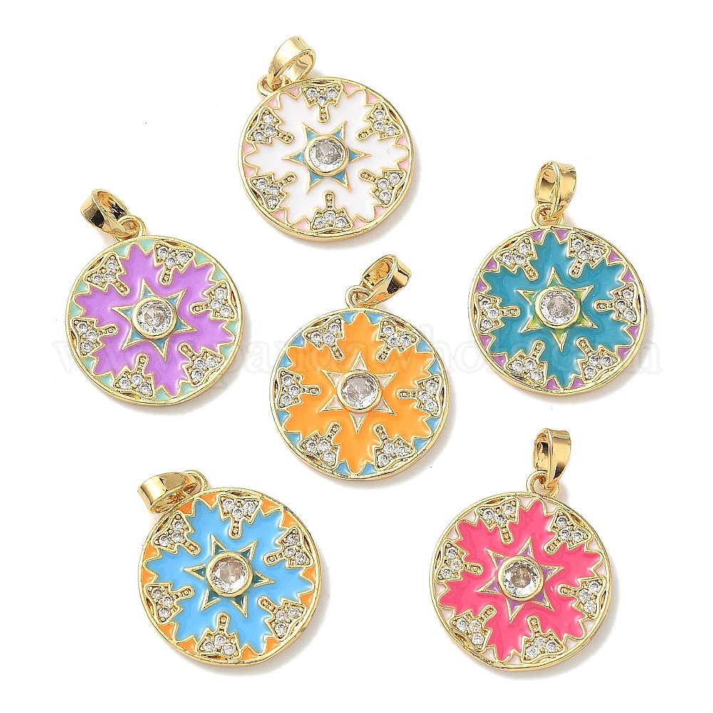 • (52) Непрозрачная лаванда Латунные микро проложить кубического циркония подвески, с эмалью, , золотые, разноцветные, 20.5x18x2.5 мм, отверстие : 5x2.5 мм