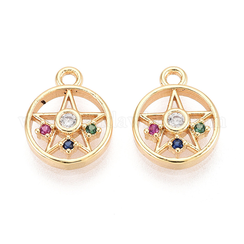 Латунные микро проложить кубического циркония прелести, плоские круглые со звездой, долговечный, без никеля