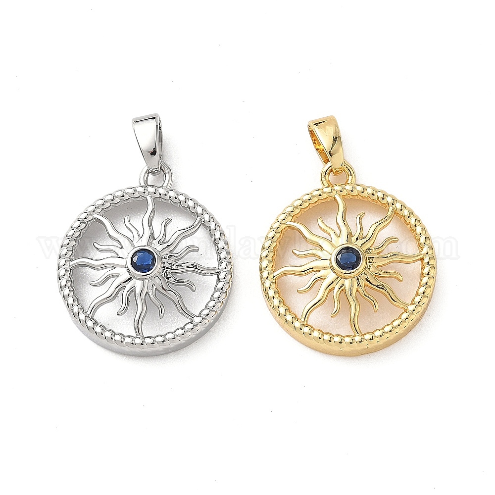 Латунные микро проложить кубического циркония подвески, плоские круглые с солнцем
